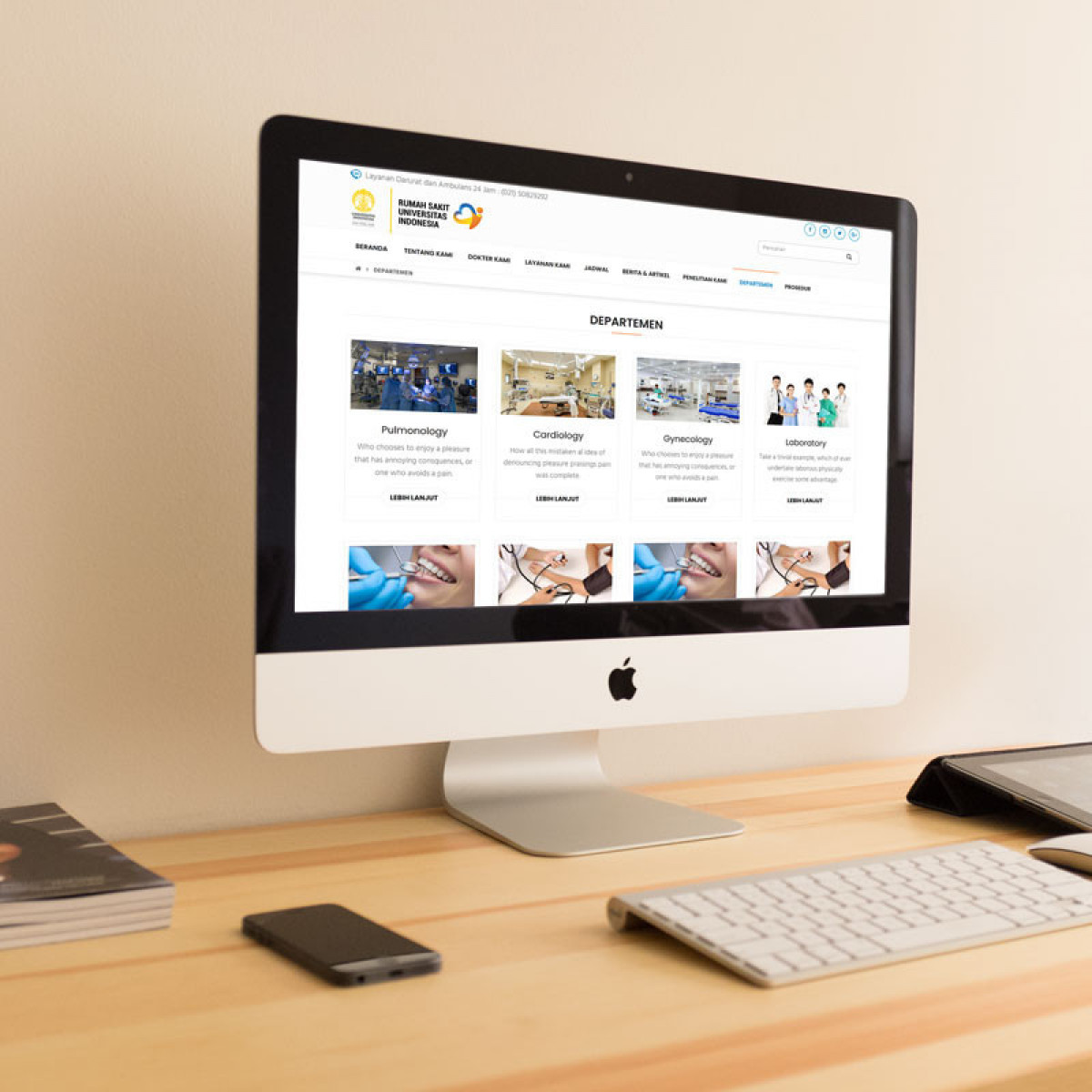 Information portal website from the University of Indonesia Hospital. contains the latest information about the hospital, profile, vision and mission as well as the latest schedule of doctors.