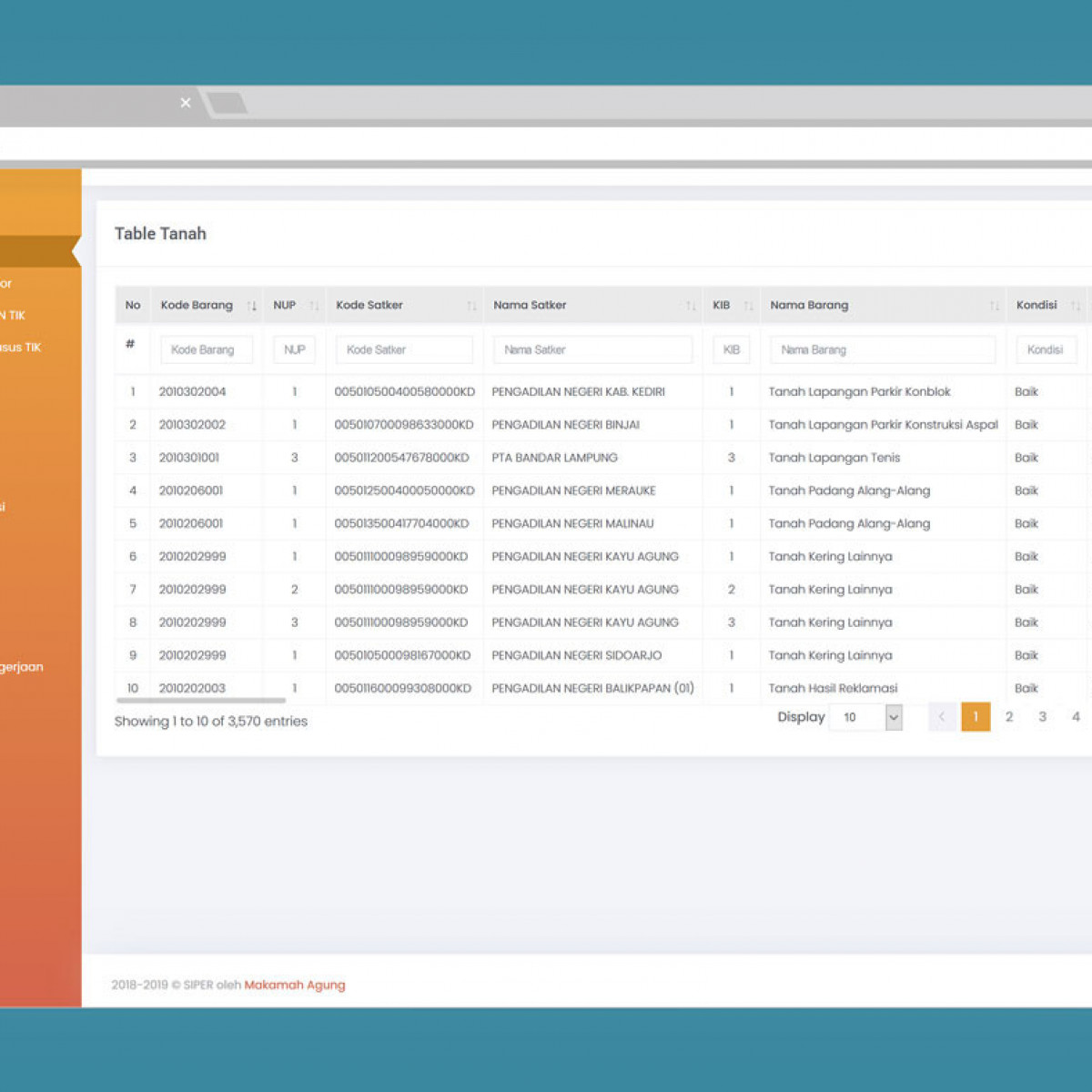 SIPER is an asset monitoring application used by the Supreme Court. with an attractive interface supported by movement charts in realtime. This application can monitor all the Supreme Court work units located throughout Indonesia.
